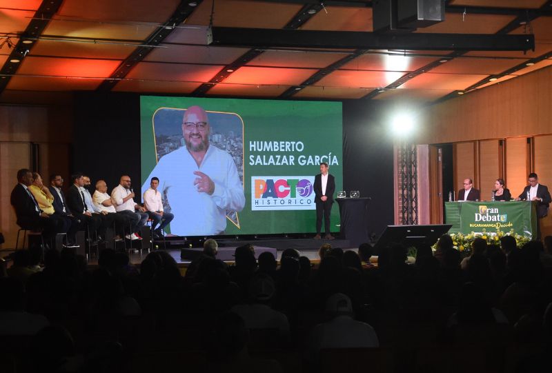 Carlos Fernando Pérez Gelvez (Partido Alianza Democrática Amplia), Juan Manuel González Bustos (Partido Demócrata), Cristian Fernando Portilla Pérez (Partido de la U, Cambio Radical, Centro Democrático), Jhan Carlos Alvernia Vergel (Partido Liberal), Carlos Enrique Bueno Cadena (Colombia Justa Libres), Rubén Fernando Morales Rey (Partido del Trabajo de Colombia, PTC), Humberto Salazar García (Pacto Histórico) y Edinson Fabián Oviedo Pinzón (Nuevo Liberalismo), sentados en ese orden de acuerdo al número con el que aparecen en el tarjetón, asumieron el protagonismo de este evento llevado a cabo de 8 a 10 de la noche del domingo 30 de noviembre en el Auditorio Mayor Carlos Gómez Albarracín, de la Universidad UNAB.