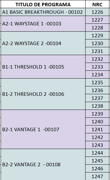 Adjuntamos los NRC según la programación académica: