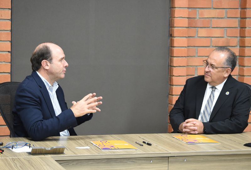 Juan Camilo Montoya Bozzi, rector UNAB, y uis Alfonso Rivera Campos, rector UACH, en la Sala de Juntas del Edificio Administrativo Armando Puyana Puyana. / Foto Pastor Virviescas