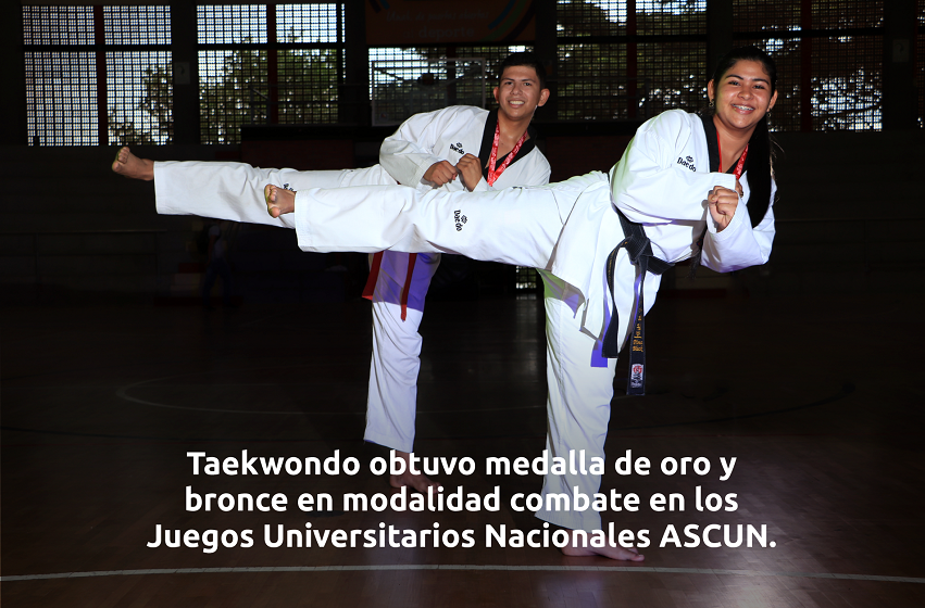 El taekwondo también es una de las modalidades en el que se destaca la Universidad, práctica deportiva poco conocida pero que llena de orgullo a los integrantes del equipo. “Es un deporte maravilloso porque además de formarlo a uno como deportista, también lo forma como persona. El taekwondo tiene unos principios que son cortesía, integridad, perseverancia, autocontrol espíritu indomable, ciencia, bondad, amor, fe y disciplina. Entonces cuando uno practica este deporte, debe interiorizar estos principios no solo en la casa o el entrenamiento, sino en la vida. Es realmente un arte marcial espectacular”, expresó Rahiza Fernanda  Camacho Gracia, estudiante del programa de Biomédica e integrante del equipo.