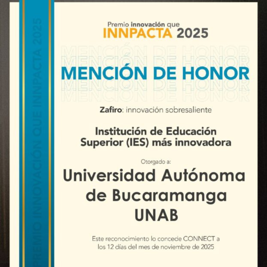 La UNAB fue reconocida en Premios de Innovación INNPACTA 2025, al ubicarse dentro del top 9 de instituciones de Educación Superior más innovadoras de Colombia.