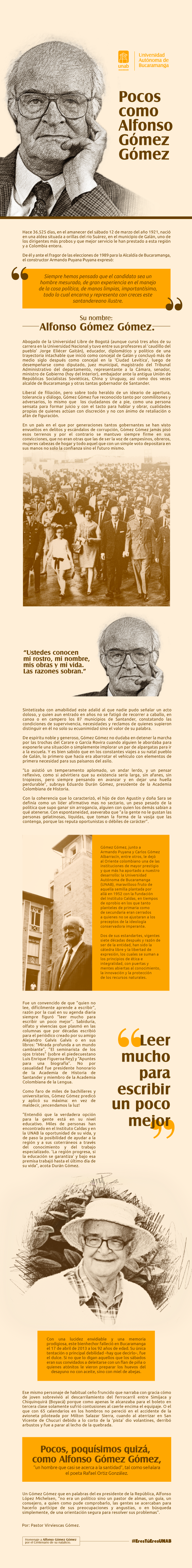 Como parte de esa conmemoración, la UNAB recuerda a Gómez Gómez con una reseña sobre su vida y trayectoria: