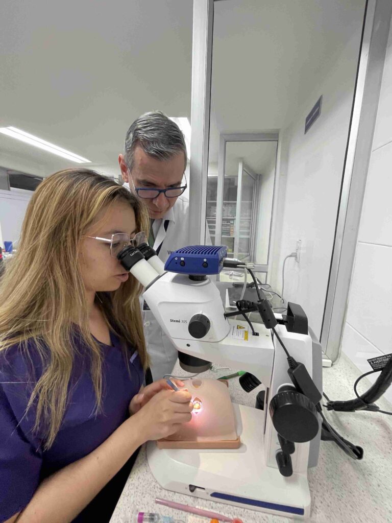 Dentro del programa de Especialización Médica y Quirúrgica en Oftalmología de la UNAB, con escenario de práctica en la Foscal, se ha implementado la formación de los residentes en dos áreas complementarias de simulación quirúrgica, disponibles en la institución.